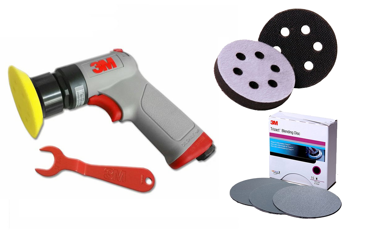 Sử dụng máy mài quỹ đạo 3M cùng giấy nhám P1000 ,Phá xước nhẹ, ố vàng trên bề mặt.